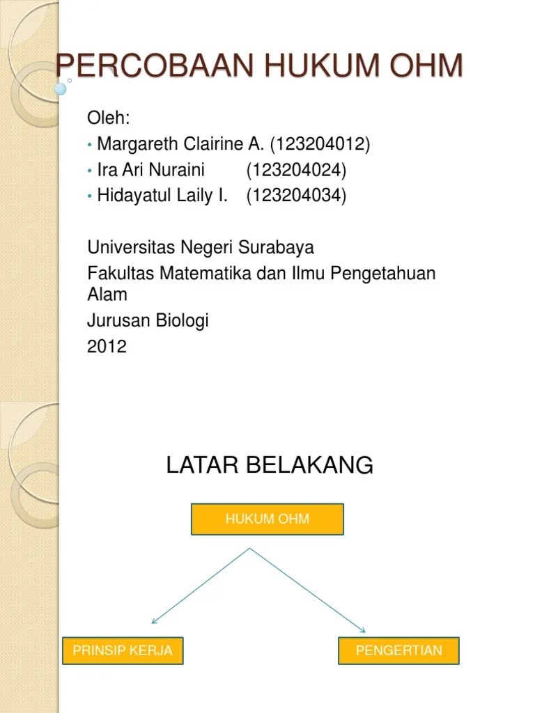 Materi fisika yang diambil dalam penelitian ini adalah hukum ohm. Hukum ohm adalah suatu pernyataan bahwa besar arus listrik yang mengalir melalui sebuah . Contoh laporan praktikum hukum ohm. Dengan melakukan percobaan yang termasuk dalam kerja laboratorium. Hukum ohm bagian 1 a.